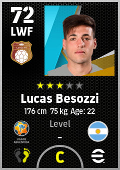 . Lucas Besozzi is a Left Wing Forward footballer from Argentina who plays for Lanús M in eFootball 2026.