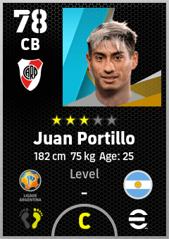 . Juan Portillo is a Center Back footballer from Argentina who plays for Ca River Plate in eFootball 2026.