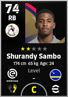 . Shurandy Sambo is a Right Back footballer from Curaçao who plays for Sparta Rotterdam in eFootball 2026.