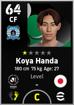 . Koya Handa is a Center Forward footballer from Japan who plays for Blaublitz Akita in eFootball 2026.