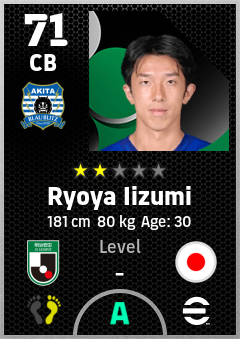 . Ryoya Iizumi is a Center Back footballer from Japan who plays for Blaublitz Akita in eFootball 2026.