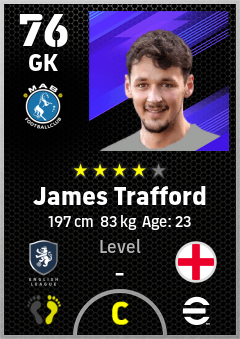 . James Trafford is a Goalkeeper footballer from England who plays for Manchester B in eFootball 2026.