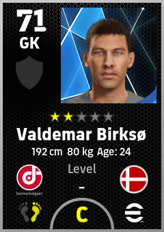 . Valdemar Birksø is a Goalkeeper footballer from Denmark who plays for Fredericia Rs in eFootball 2026.