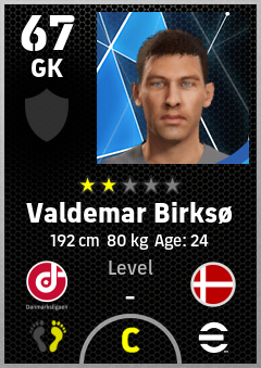 . Valdemar Birksø is a Goalkeeper footballer from Denmark who plays for Fredericia Rs in eFootball 2026.