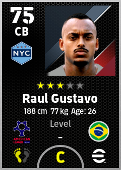 . Raul Gustavo is a Center Back footballer from Brazil who plays for New York City B in eFootball 2026.