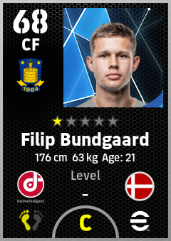 . Filip Bundgaard is a Center Forward footballer from Denmark who plays for Brøndby Gb in eFootball 2026.