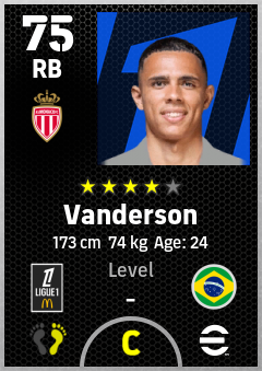 . Vanderson is a Right Back footballer from Brazil who plays for As Monaco in eFootball 2026.