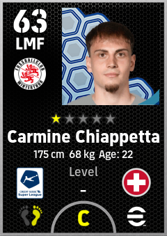 . Carmine Chiappetta is a Left Midfielder footballer from Switzerland who plays for Winterthur Rw in eFootball 2026.
