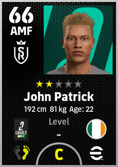 . John Patrick is a Attacking Midfielder footballer from Republic Of Ireland who plays for Stade De Reims in eFootball 2026.