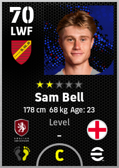 . Sam Bell is a Left Wing Forward footballer from England who plays for Bristol R in eFootball 2026.