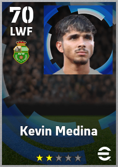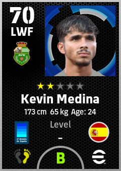 . Kevin Medina is a Left Wing Forward footballer from Spain who plays for Córdoba Vb in eFootball 2026.