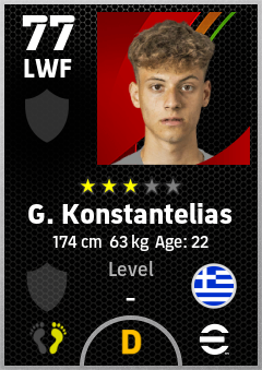 . G. Konstantelias is a Left Wing Forward footballer from Greece who plays for Free in eFootball 2026.
