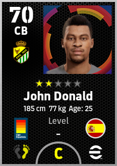 . John Donald is a Center Back footballer from Spain who plays for Elche Bv in eFootball 2026.