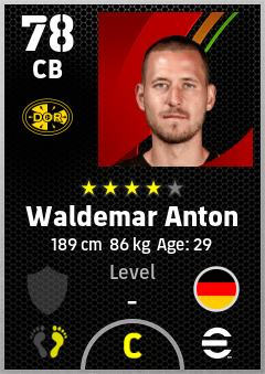 . Waldemar Anton is a Center Back footballer from Germany who plays for Borussia Dortmund in eFootball 2026.