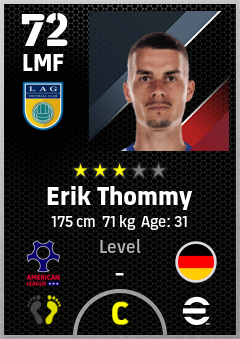 . Erik Thommy is a Left Midfielder footballer from Germany who plays for Los Angeles Wby in eFootball 2026.