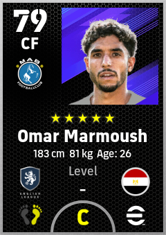 . Omar Marmoush is a Center Forward footballer from Egypt who plays for Manchester B in eFootball 2026.