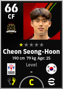 . Cheon Seong-Hoon is a Center Forward footballer from Korea Republic who plays for Seoul Br in eFootball 2026.