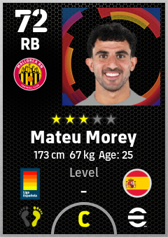 . Mateu Morey is a Right Back footballer from Spain who plays for Mallorca Rn in eFootball 2026.