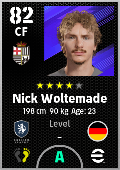 . Nick Woltemade is a Center Forward footballer from Germany who plays for Newcastle Wb in eFootball 2026.