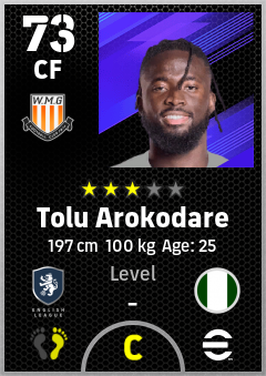 . Tolu Arokodare is a Center Forward footballer from Nigeria who plays for Wolverhampton Yb in eFootball 2026.