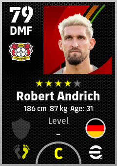 . Robert Andrich is a Defensive Midfielder footballer from Germany who plays for Bayer 04 Leverkusen in eFootball 2026.