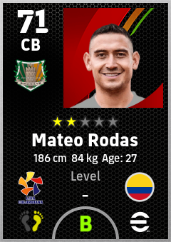 . Mateo Rodas is a Center Back footballer from Colombia who plays for Bogotá Vb in eFootball 2026.