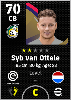 . Syb Van Ottele is a Center Back footballer from Netherlands who plays for Fortuna Sittard in eFootball 2026.