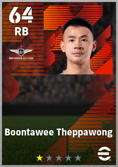 Boontawee Theppawong is a Right Back footballer from Thailand who plays for True Bangkok United Fc in eFootball 2026.