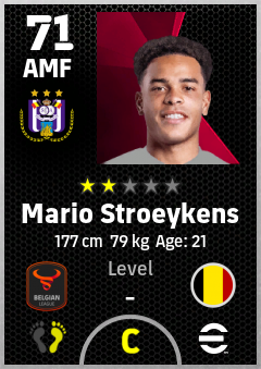 . Mario Stroeykens is a Attacking Midfielder footballer from Belgium who plays for Anderlecht Pw in eFootball 2026.