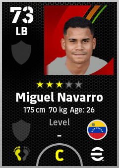 . Miguel Navarro is a Left Back footballer from Venezuela who plays for Free in eFootball 2026.