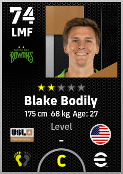 . Blake Bodily is a Left Midfielder footballer from United States who plays for Tampa Bay Rowdies in eFootball 2026.