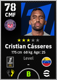 . Cristian Cásseres is a Center Midfielder footballer from Venezuela who plays for Toulouse Fc in eFootball 2026.