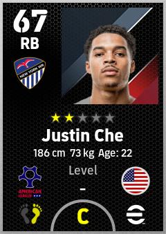 . Justin Che is a Right Back footballer from United States who plays for New York Wr in eFootball 2026.