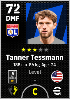 . Tanner Tessmann is a Defensive Midfielder footballer from United States who plays for Olympique Lyonnais in eFootball 2026.