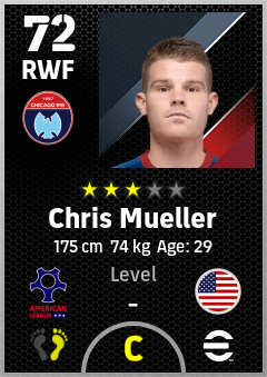 . Chris Mueller is a Right Wing Forward footballer from United States who plays for Chicago Rw in eFootball 2026.