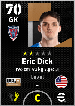 . Eric Dick is a Goalkeeper footballer from United States who plays for Indy Eleven in eFootball 2026.