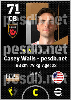 . Casey Walls is a Center Back footballer from United States who plays for Phoenix Rising Fc in eFootball 2026.