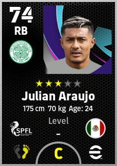. Julian Araujo is a Right Back footballer from Mexico who plays for Celtic Fc in eFootball 2026.
