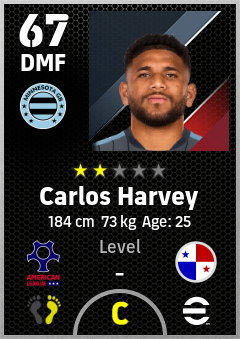 . Carlos Harvey is a Defensive Midfielder footballer from Panama who plays for Minnesota Gb in eFootball 2026.