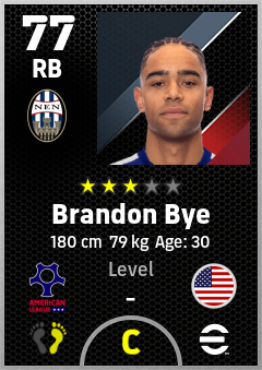 . Brandon Bye is a Right Back footballer from United States who plays for New England Bw in eFootball 2026.