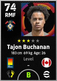 . Tajon Buchanan is a Right Midfielder footballer from Canada who plays for Villarreal A in eFootball 2026.