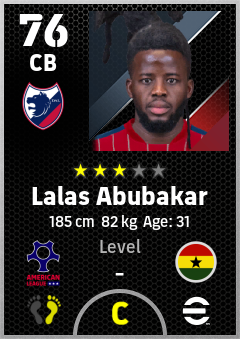 . Lalas Abubakar is a Center Back footballer from Ghana who plays for Dallas Rw in eFootball 2026.