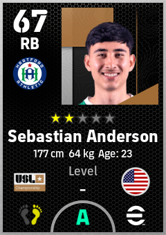 . Sebastian Anderson is a Right Back footballer from United States who plays for Hartford Athletic in eFootball 2026.