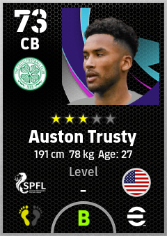 . Auston Trusty is a Center Back footballer from United States who plays for Celtic Fc in eFootball 2026.