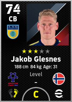 . Jakob Glesnes is a Center Back footballer from Norway who plays for Los Angeles Wby in eFootball 2026.