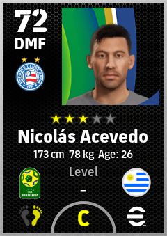 . Nicolás Acevedo is a Defensive Midfielder footballer from Uruguay who plays for Ec Bahia in eFootball 2026.