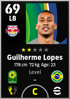 . Guilherme Lopes is a Left Back footballer from Brazil who plays for Red Bull Bragantino in eFootball 2026.