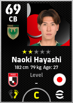 . Naoki Hayashi is a Center Back footballer from Japan who plays for Tokyo Verdy in eFootball 2026.