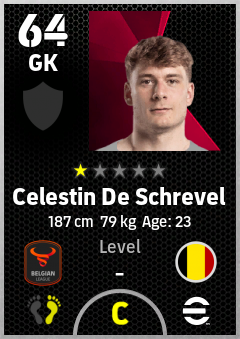 . Celestin De Schrevel is a Goalkeeper footballer from Belgium who plays for La Louvière Gw in eFootball 2026.