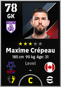 . Maxime Crépeau is a Goalkeeper footballer from Canada who plays for Orlando Pw in eFootball 2026.